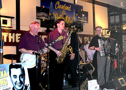 L to R: Cliff Penniston, Don Hunjadi, and Mike Schneider. Taken at Tony Petkovsek's Thanksgiving Polka Party (Cleveland, OH) November 2006 by Heather Fuerniss.