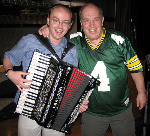 L to R: Mike Schneider and Hank Thunander. Taken during the 2008 Polka Cruise (Carnival Valor) March 2008 by Heather Schneider.