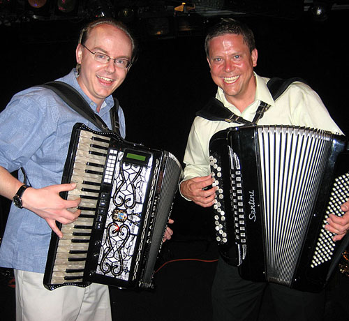 L to R: Mike Schneider and Joey Tomsick. Taken during the 2008 Polka Cruise (Carnival Valor) March 2008 by Heather Schneider.