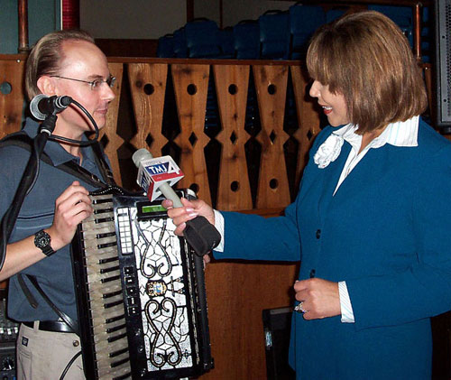 L to R: Mike Schneider and Carole Meekins of Today's TMJ4. Taken at the Pulaski Inn (Cudahy, WI) August 2005 by Dennis Wiskerchen.