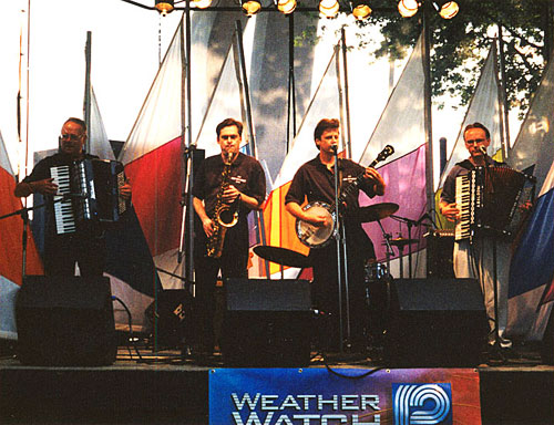 L to R: Paul Schneider, Don Hunjadi, Gary Hendrickson, Mike Schneider. Taken at Summerfest (Milwaukee, WI) June 1999 by Nancy Schneider.