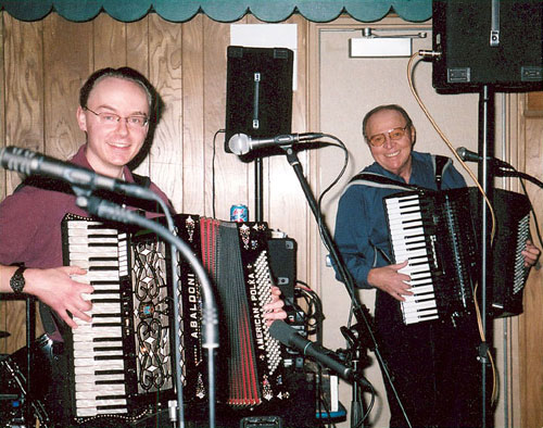 L to R: Mike Schneider and Waltz King Verne Meisner. Taken at the Pulaski Inn (Cudahy, WI) December 2004 by Gene Bednarz.