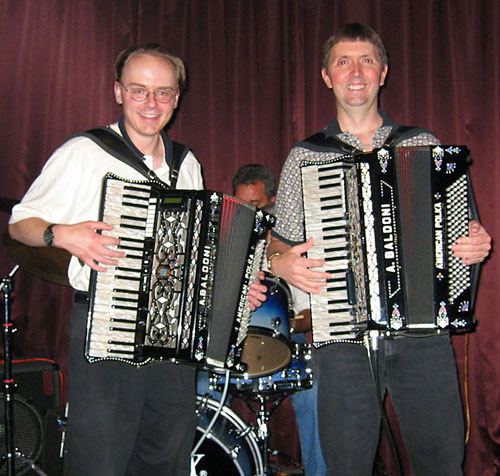 L to R: Mike Schneider and 1989 Grammy nominee Gordon Hartmann. Taken at the Essen Haus (Madison, WI) July 2004.