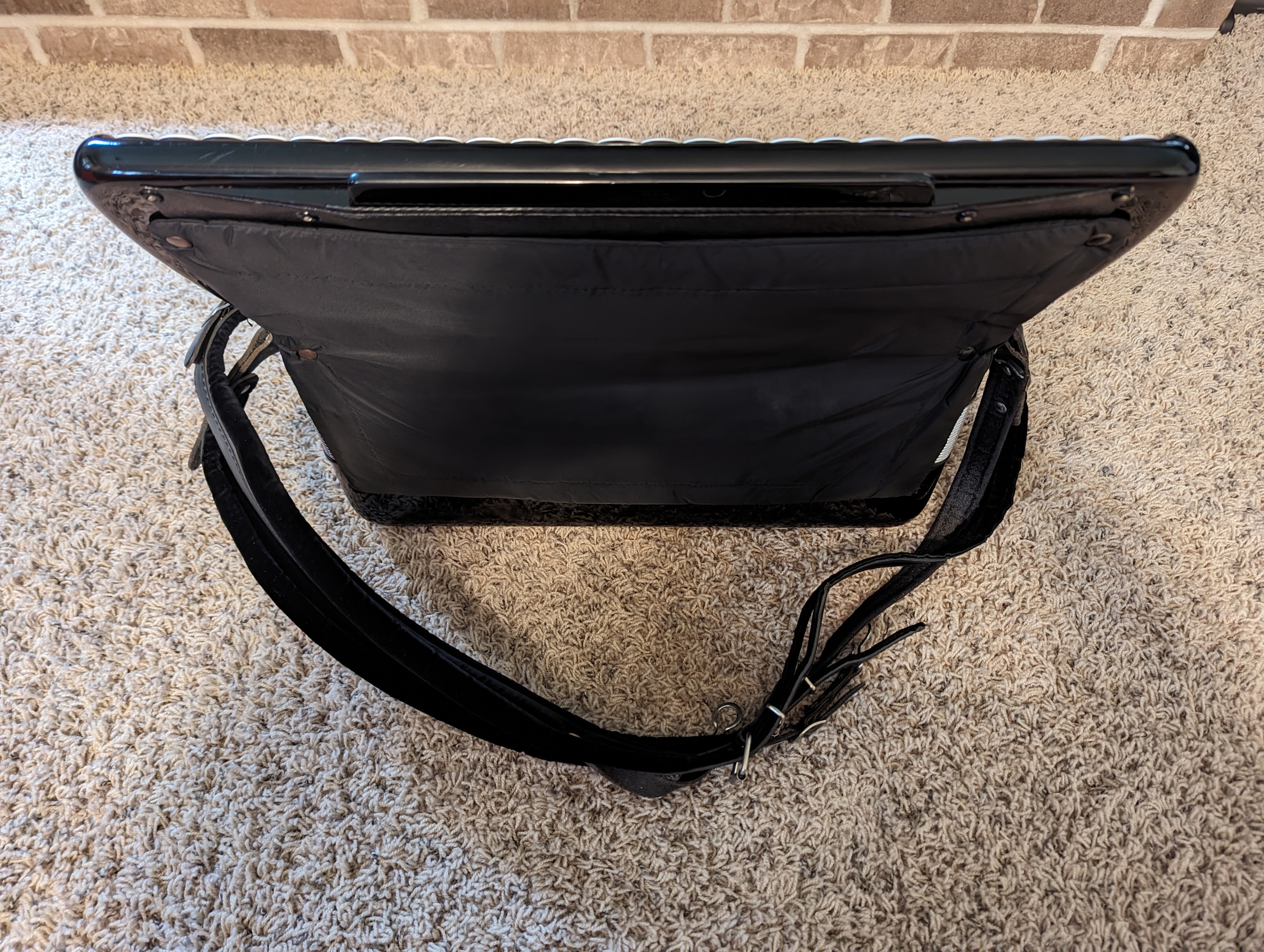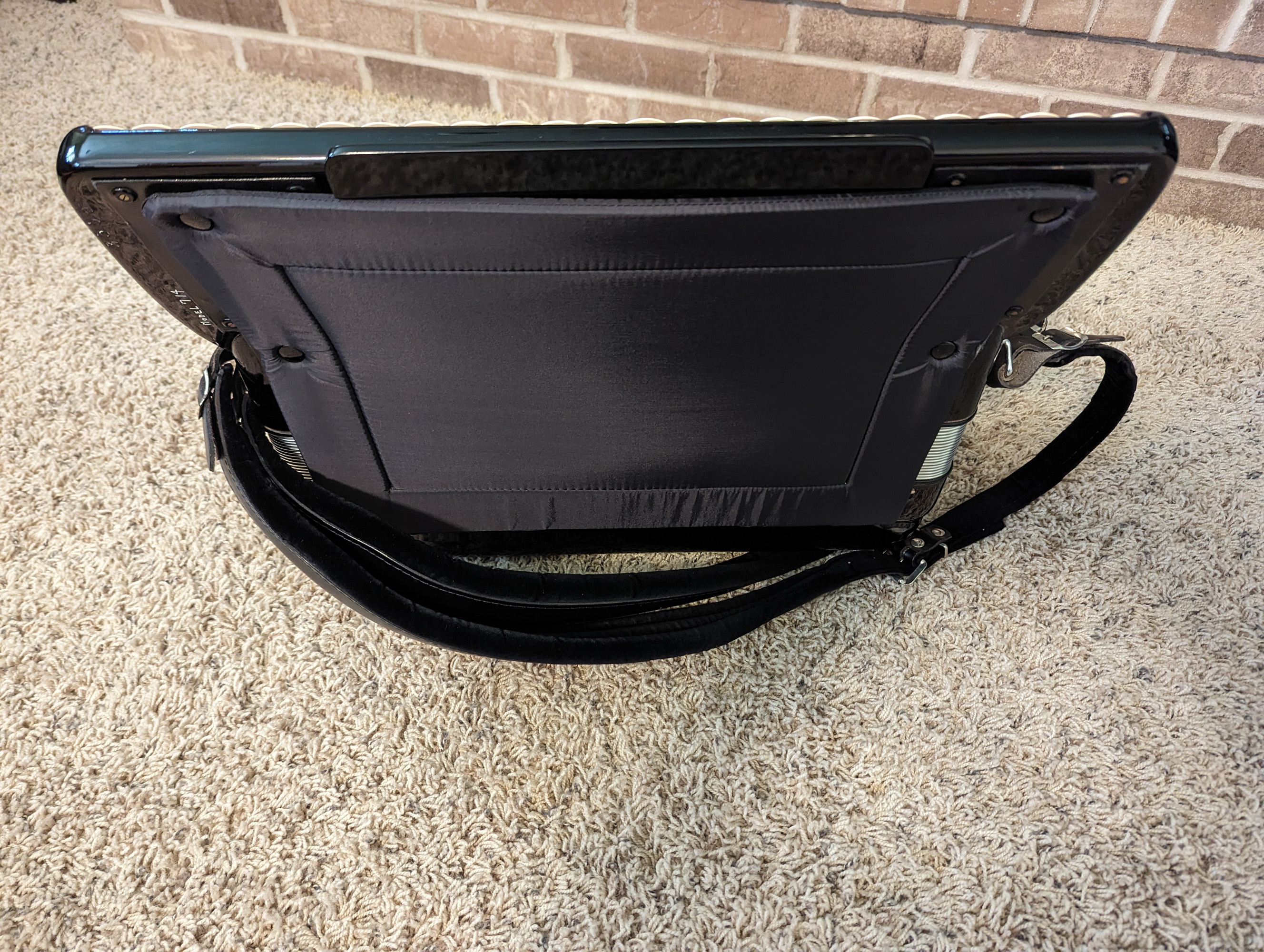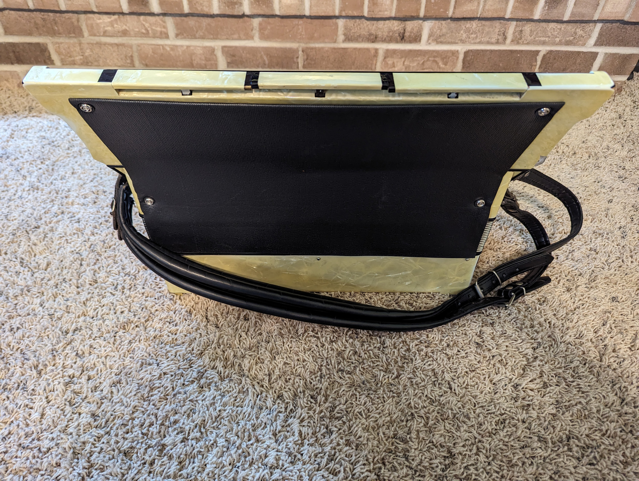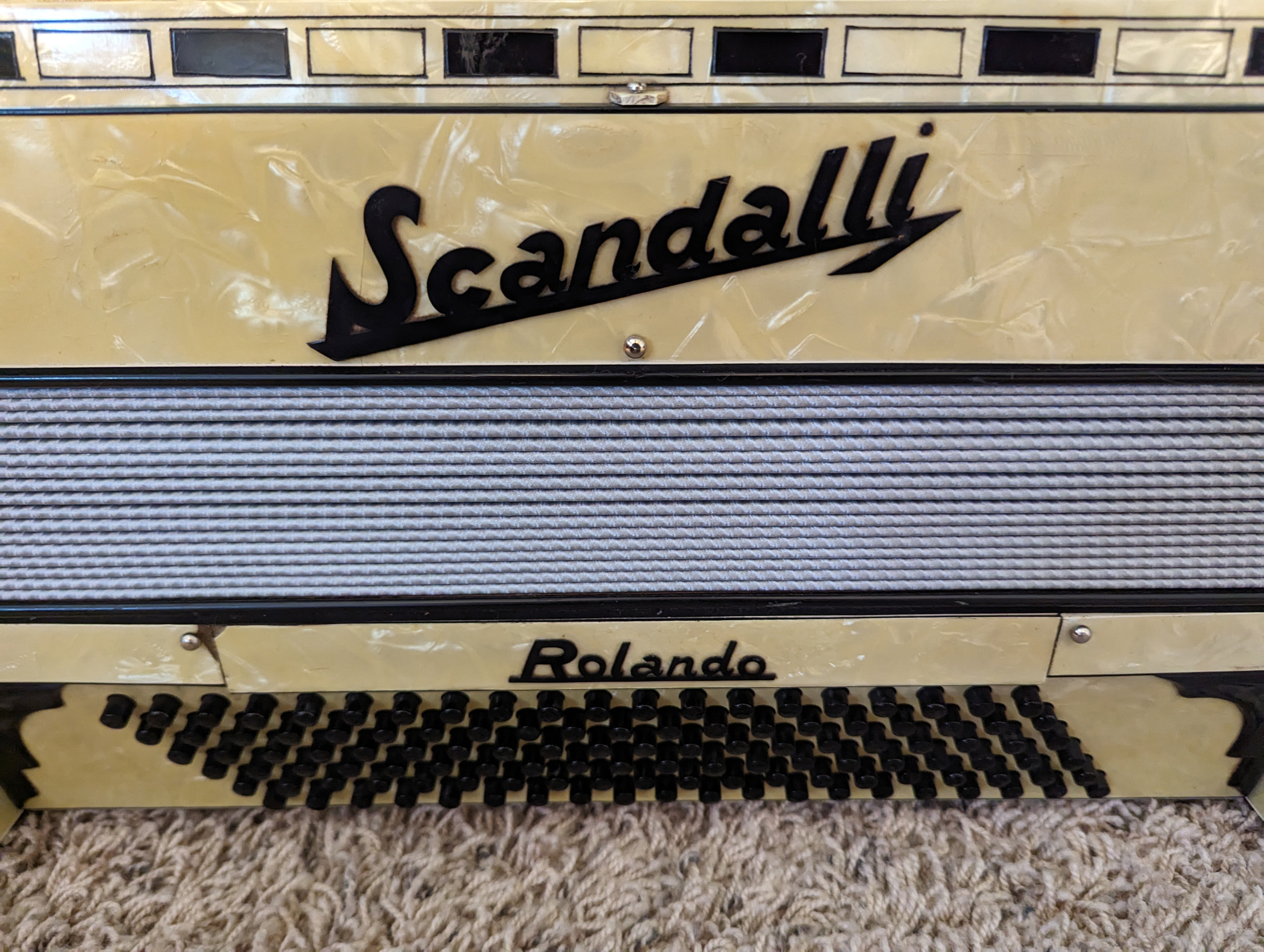 This Rivoli piano accordion is a smaller format, 41-key, 120-bass piano
