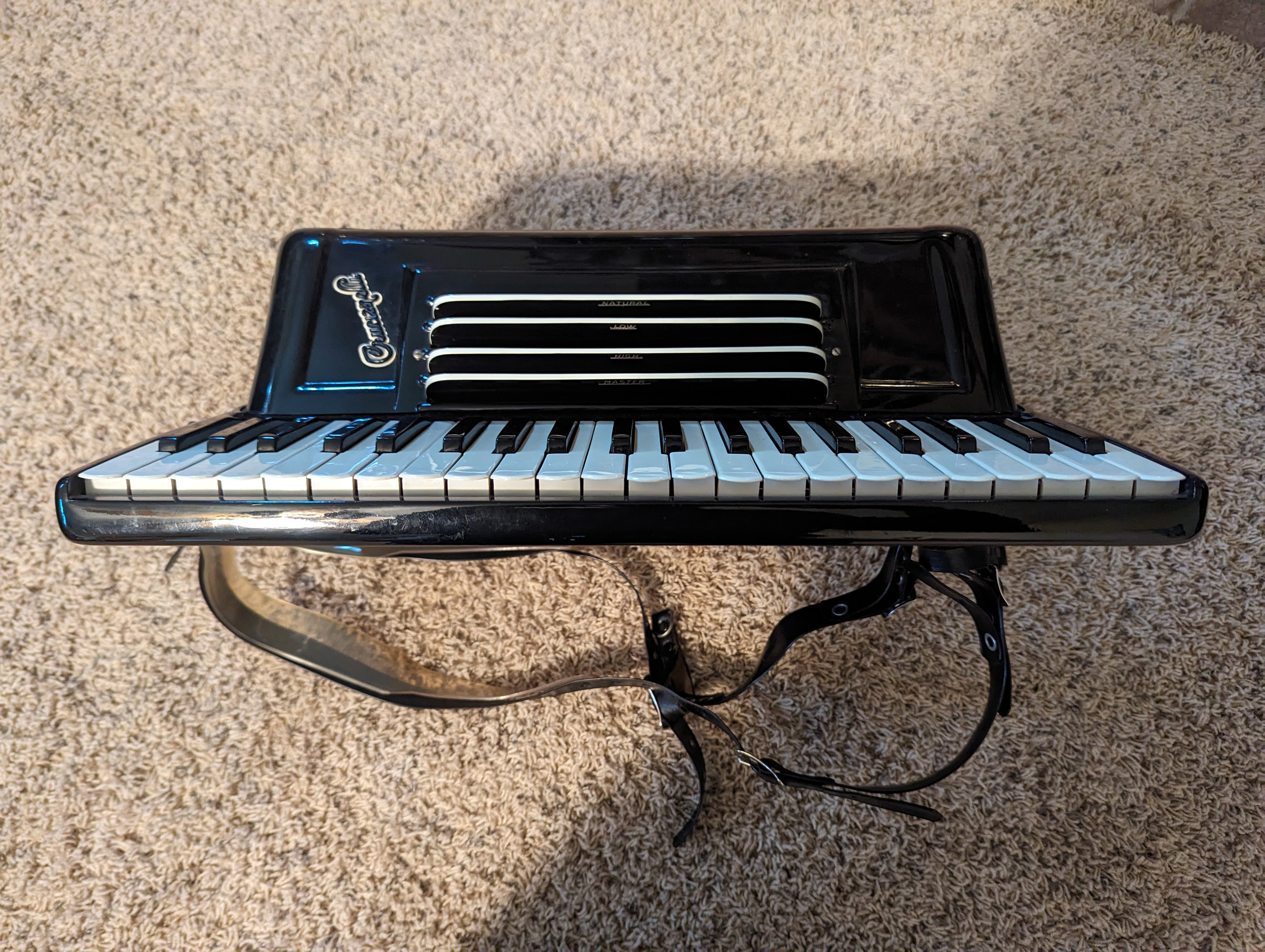 This piano accordion is in very good physical condition and tune, although a few