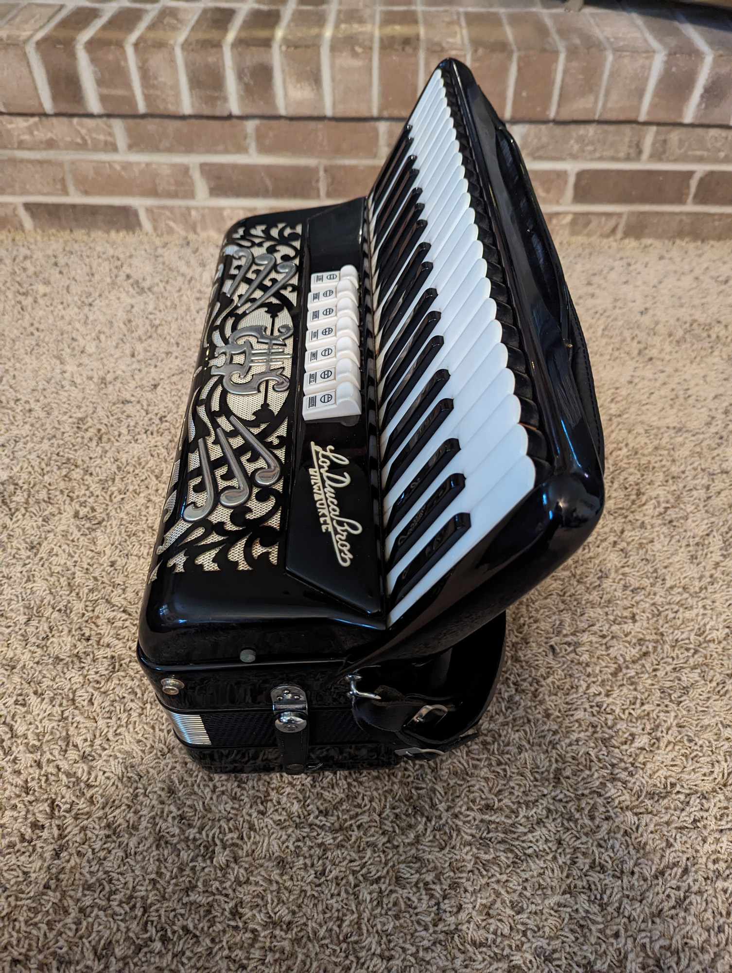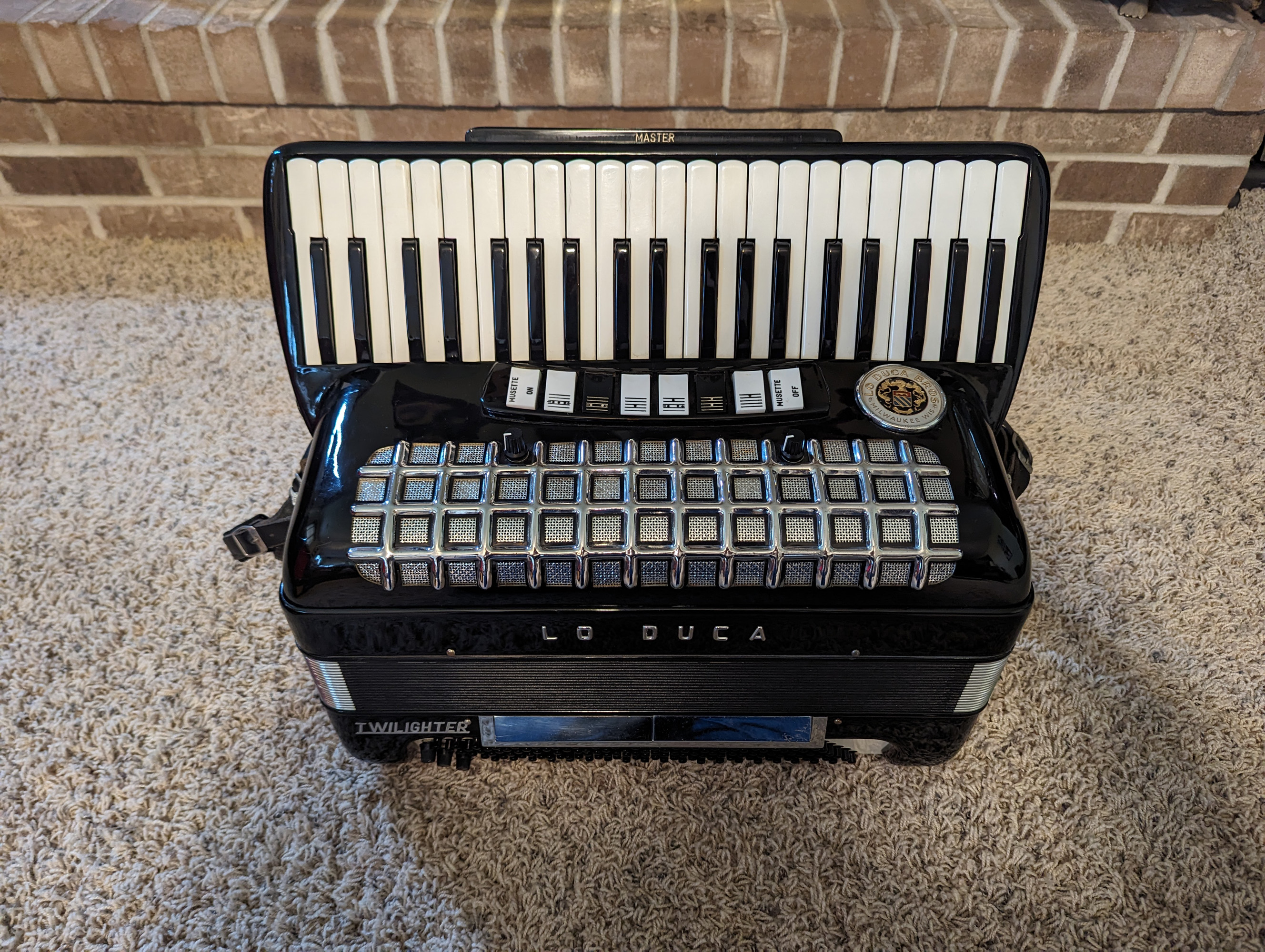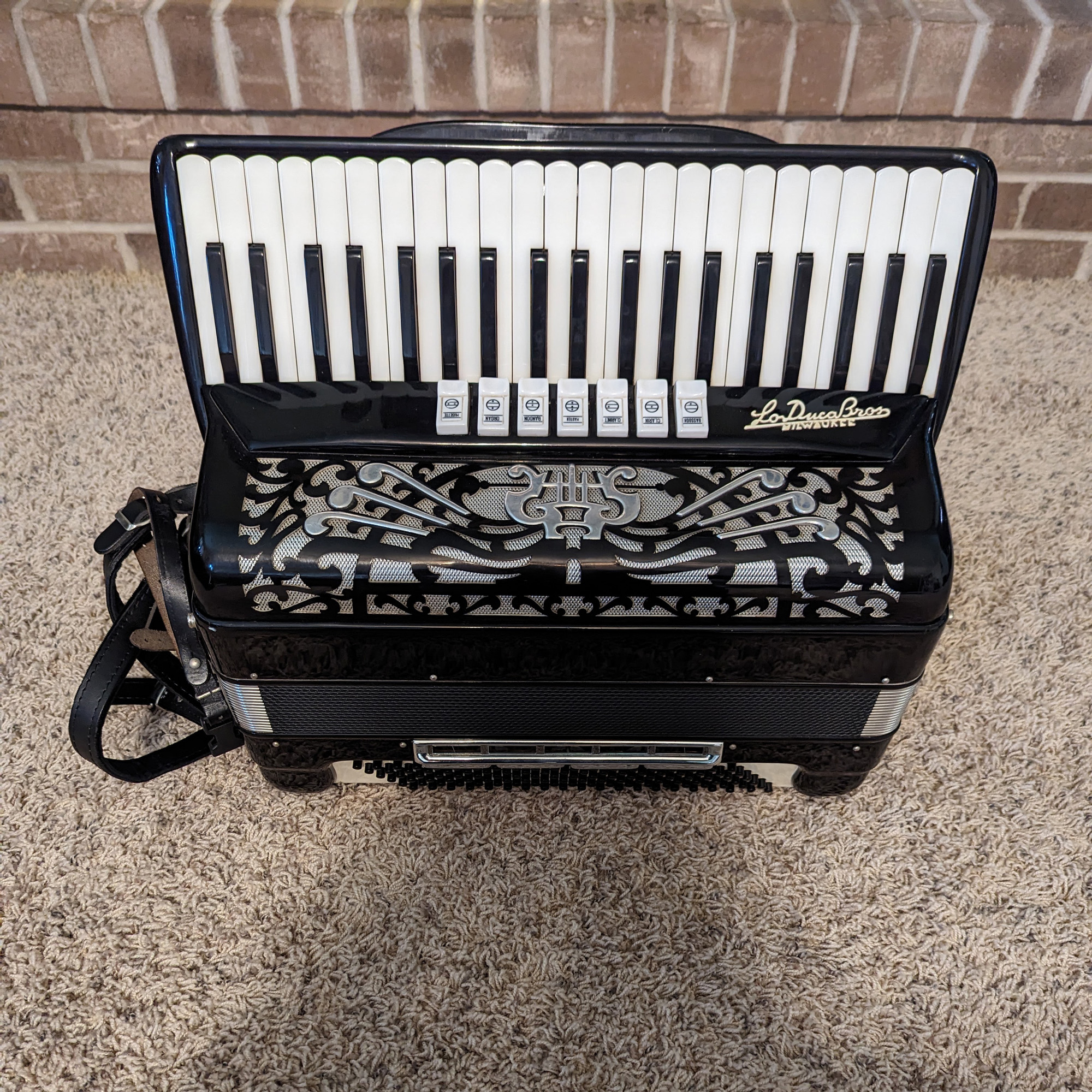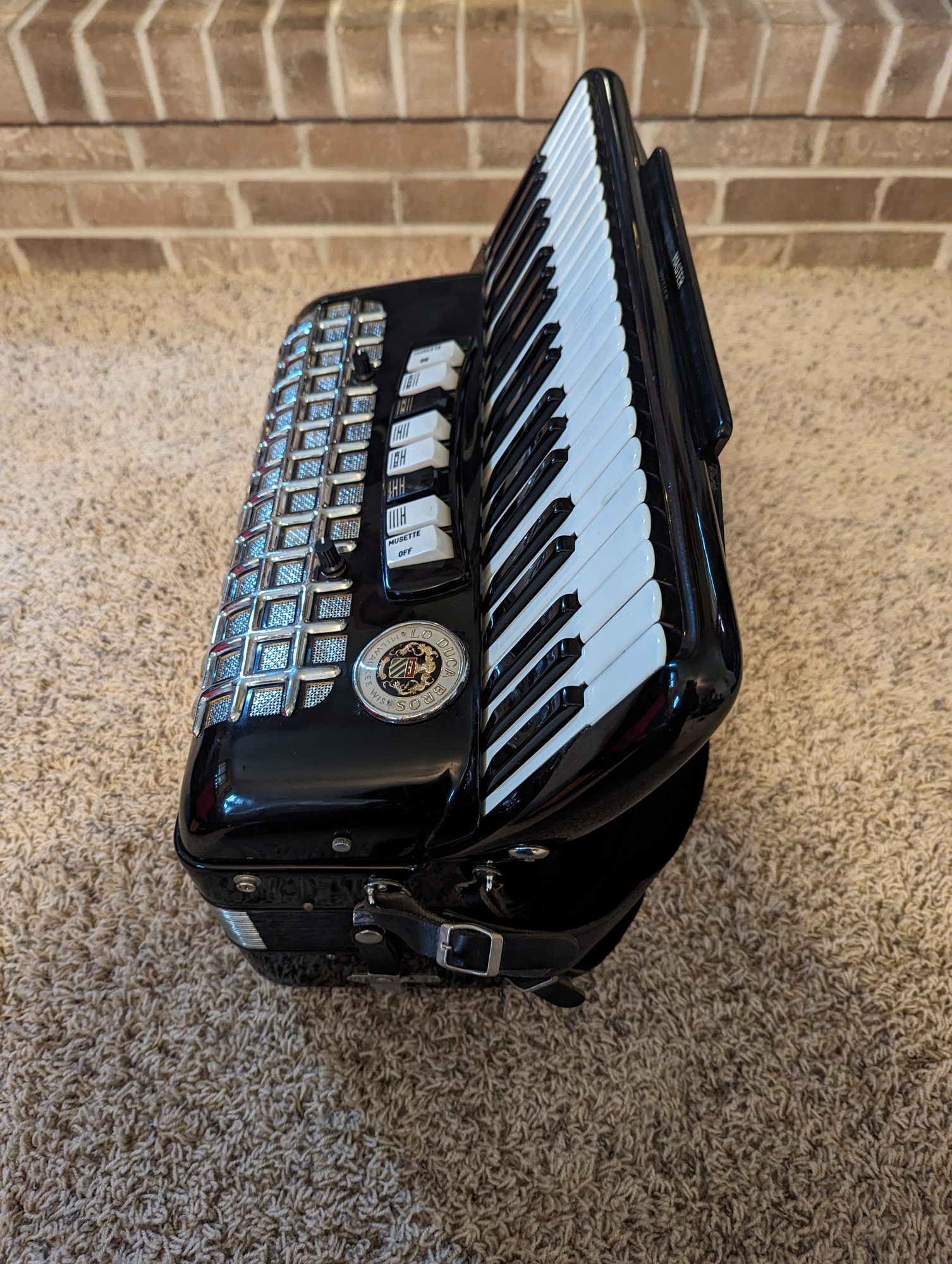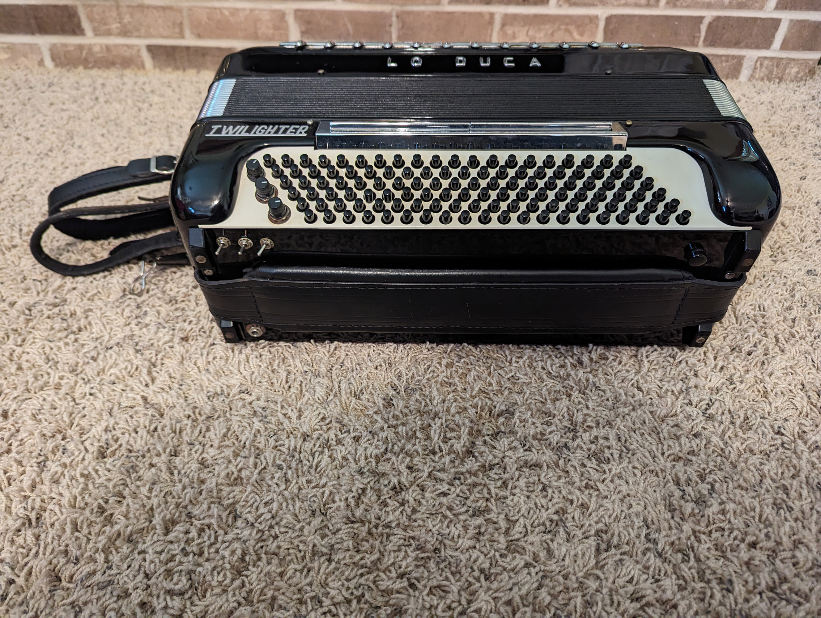 This Lo Duca piano accordion was made by Morbidoni. It's in good physical