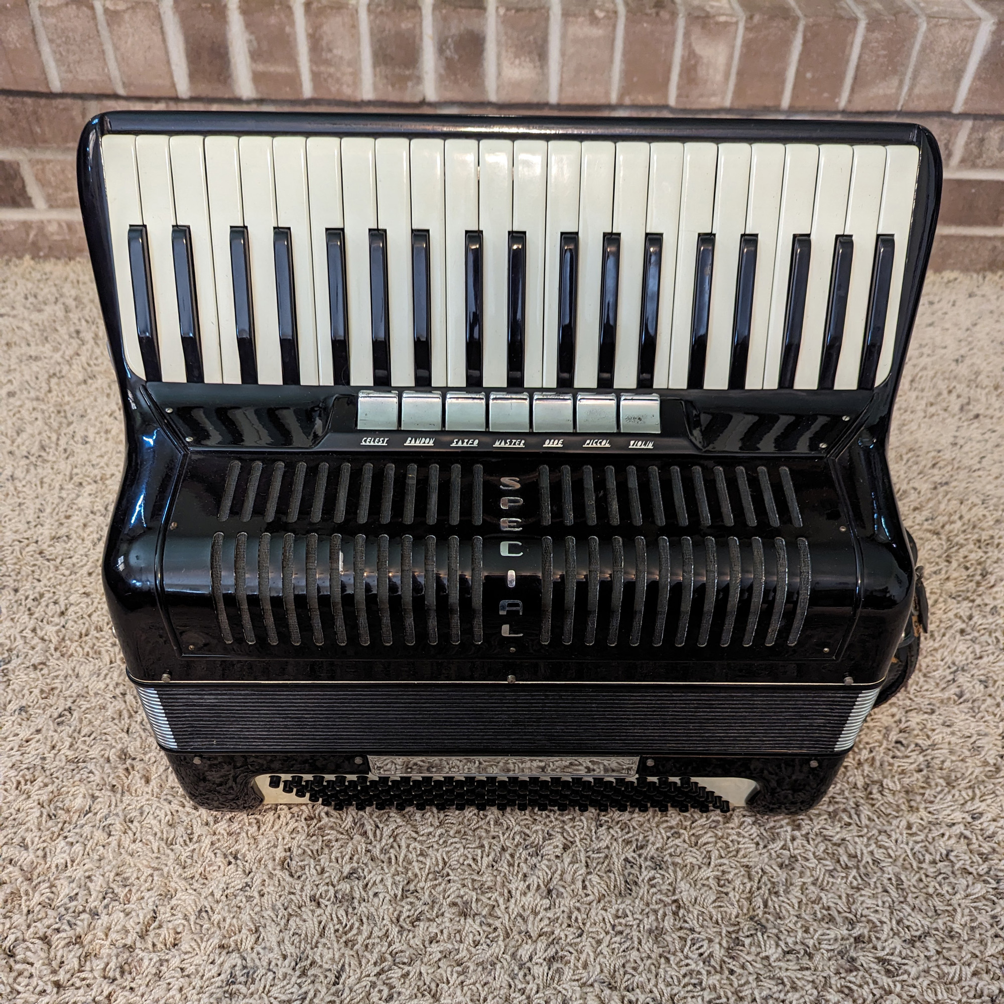 This Special model piano accordion is in good physical condition, but will